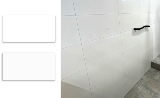 Bei der weissen Wandfliese im Format 30x60cm können Sie aus 2 Oberflächen wählen.